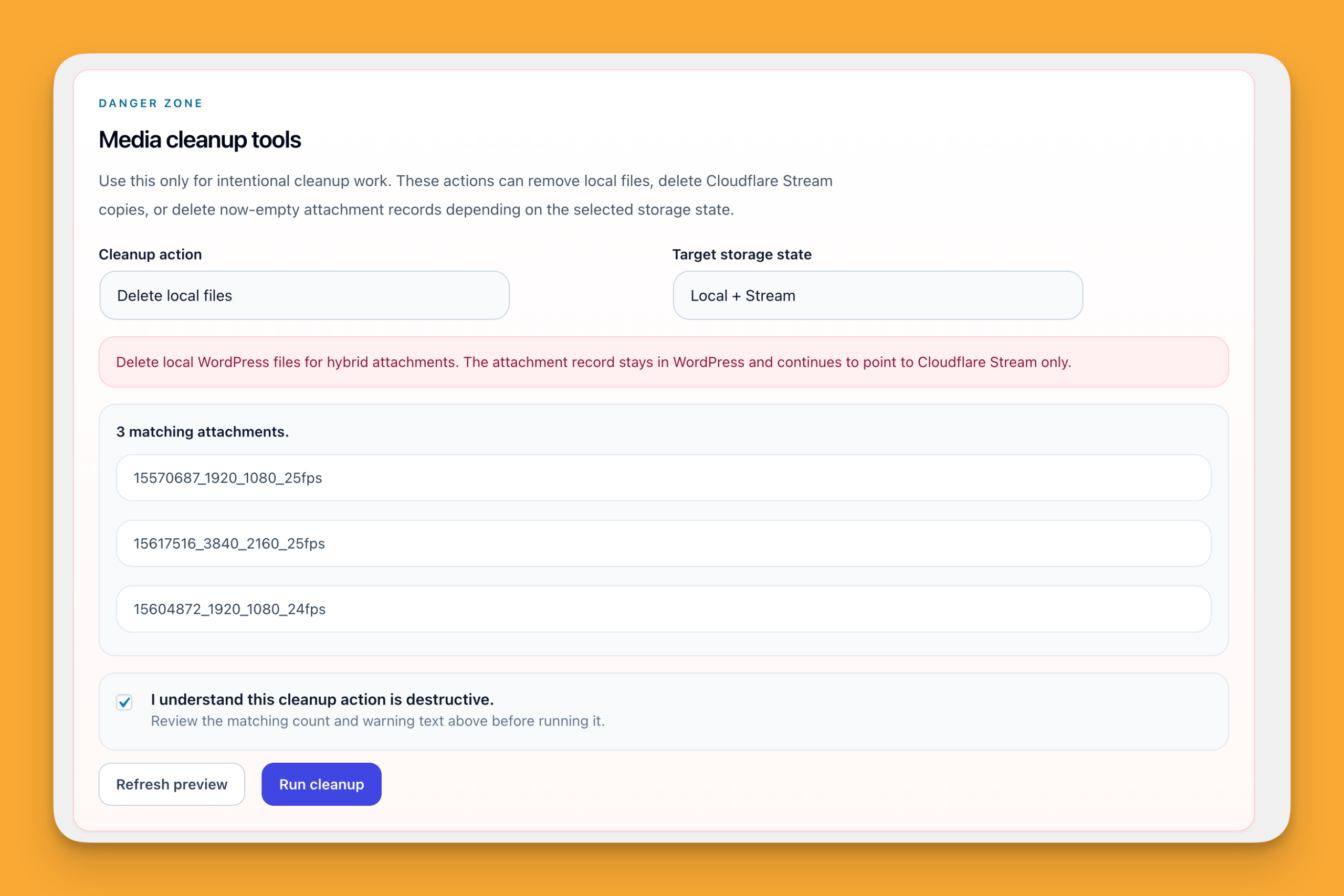 Upload, sync, restore, and manage WordPress videos with Cloudflare Stream from the Media Library you already use.