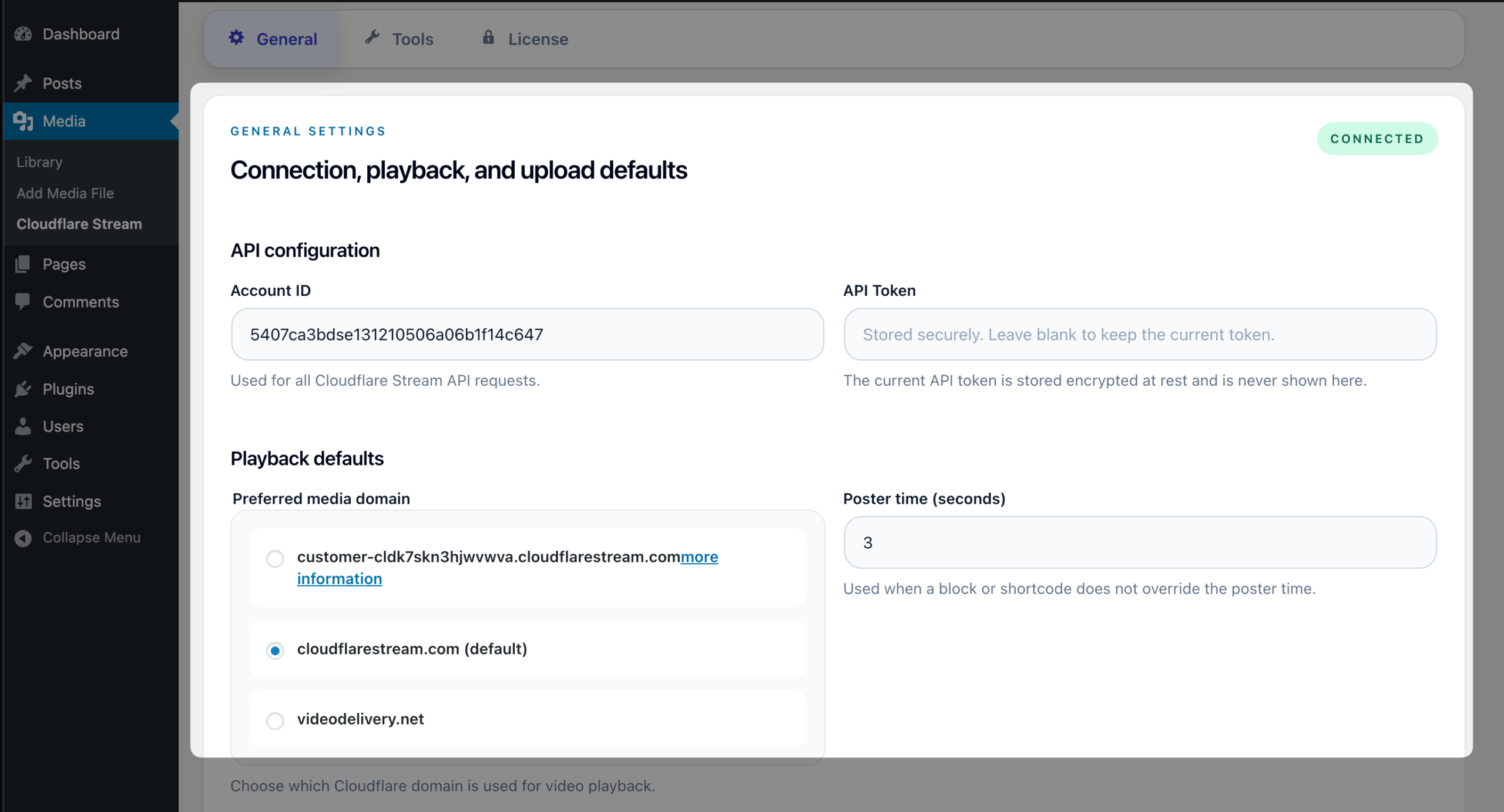 - A Cloudflare Stream account ID.